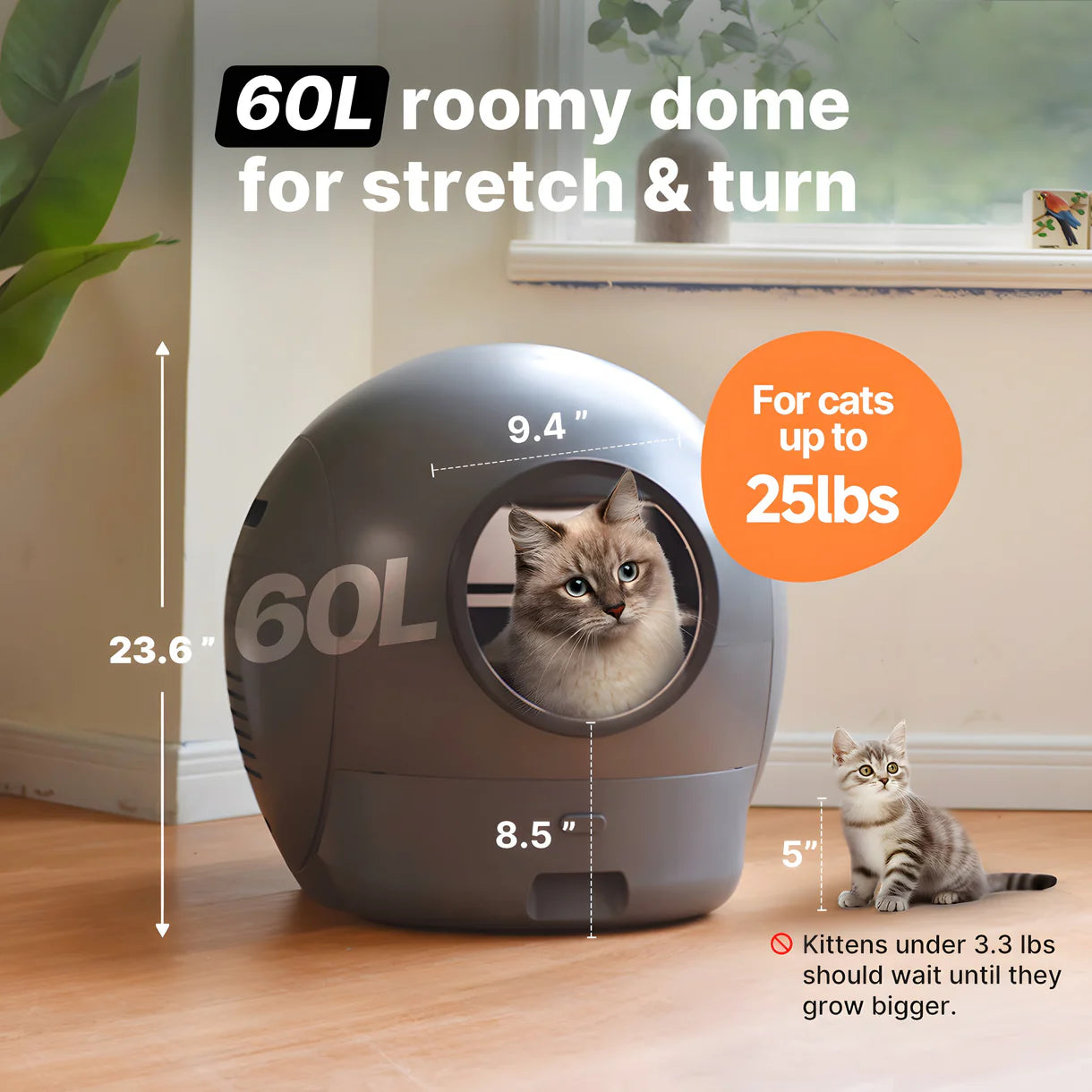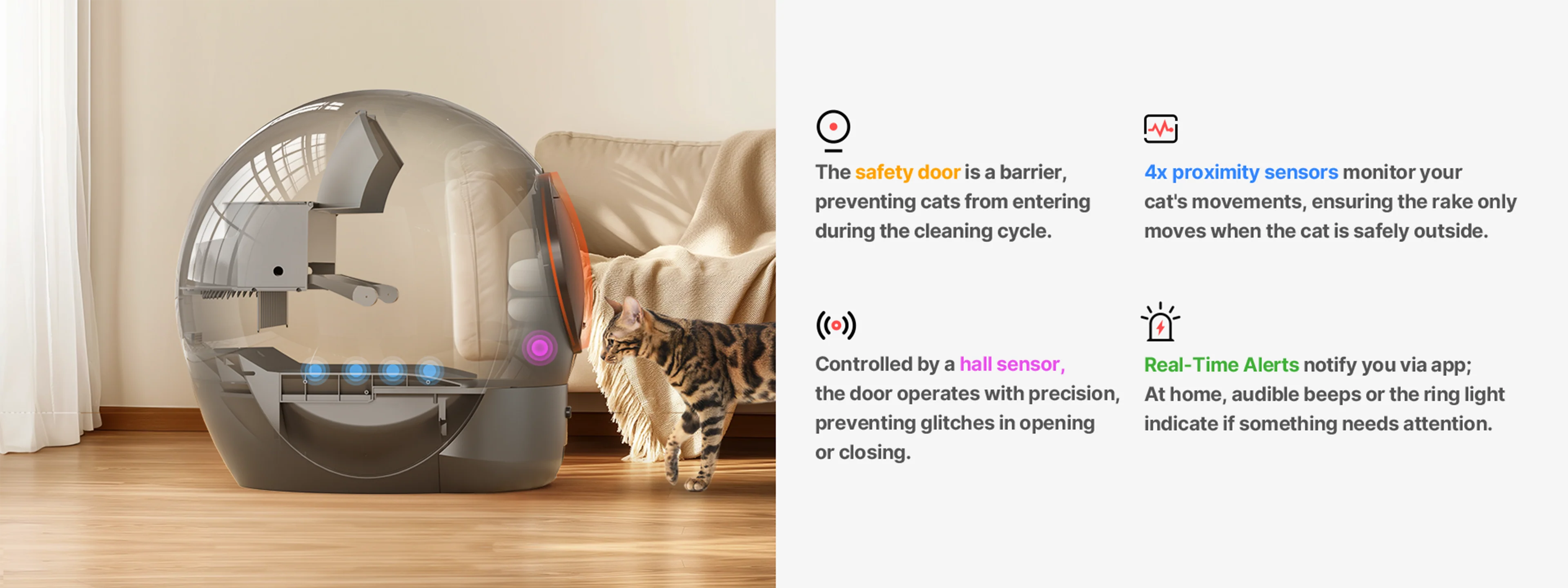 The built-in UV light neutralizes bacteria, keeping the litter bed hygienic and fresh.