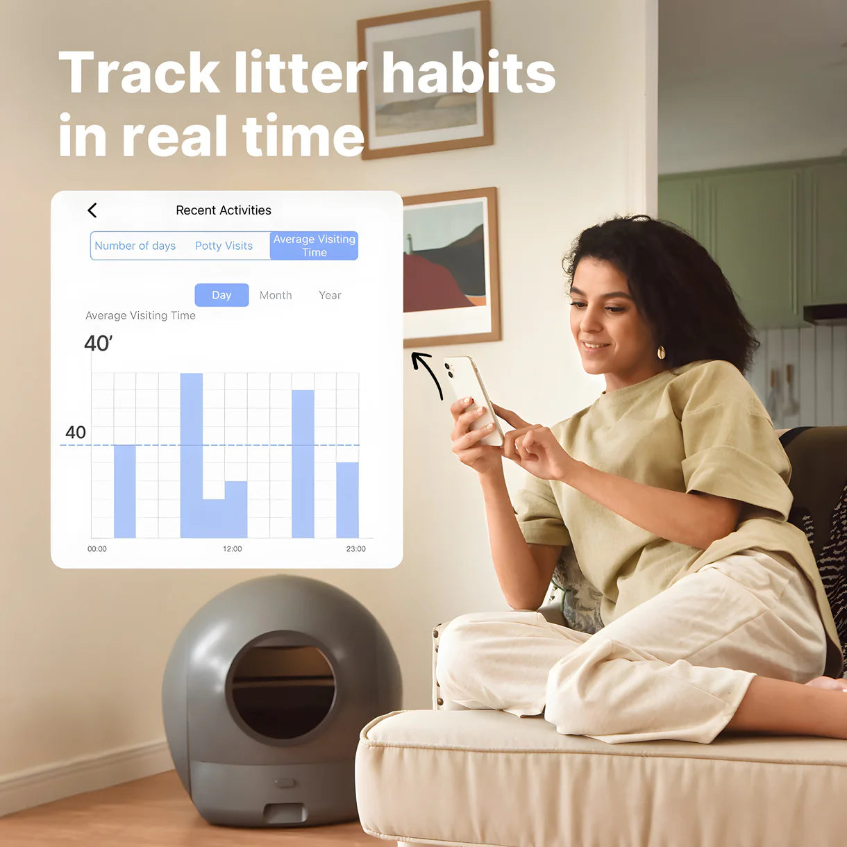 Scooping is a chore. So we did away with it. The Orbitie Litter Box auto-cleans, separating cat waste from clean litter, giving a fresh bed of litter every time.