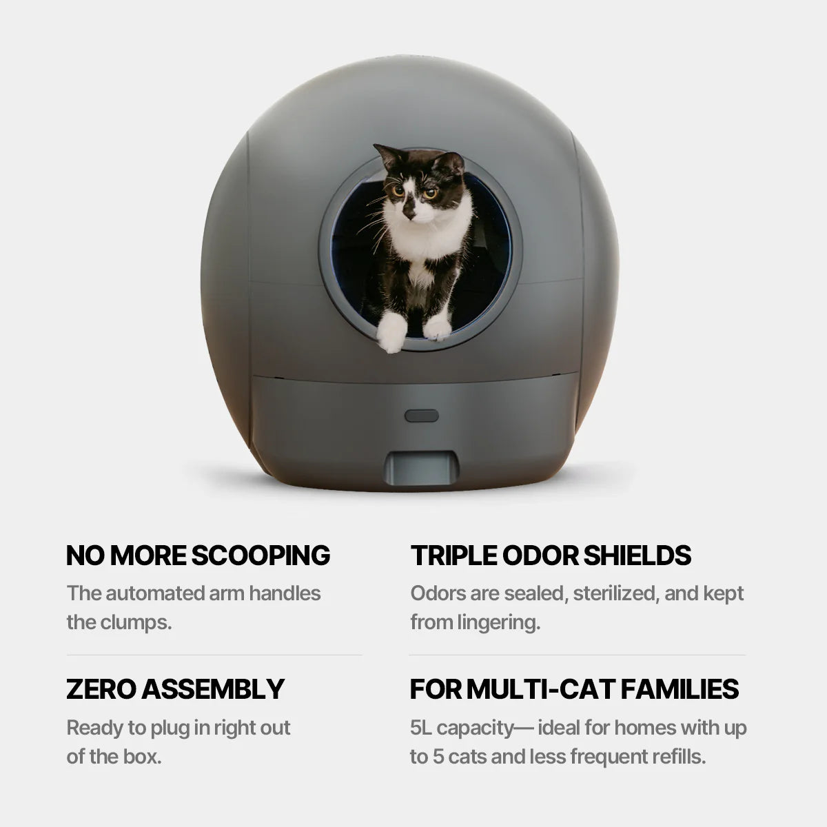 Meet Spaceship II, your ultimate No More Scooping helper! Its automated arm clears clumps after every cat visit, keeping your home fresh and odor-free. Enjoy a holiday season of ease and comfort—let Spaceship II bring peace to your home!